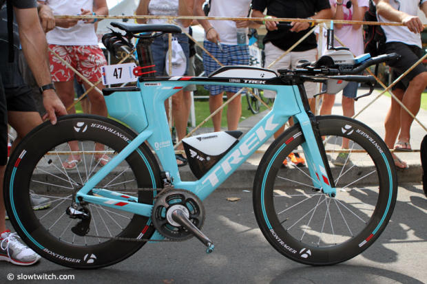 The very distinctive Trek Speed Concept of Dirk Bockel. It though seemed that he took off the draft box before he went in.