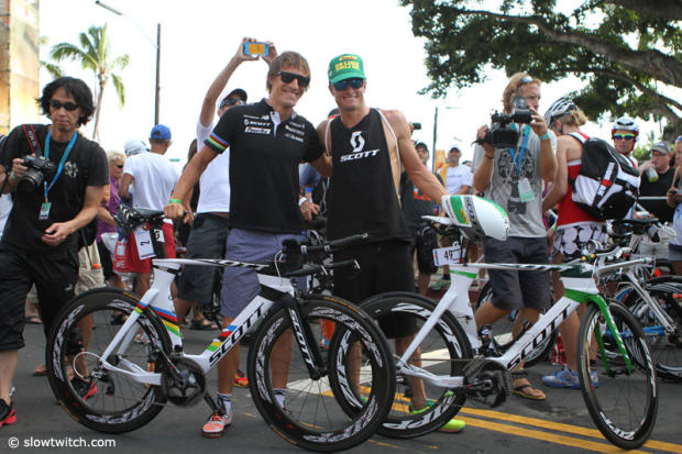 Sebastian Kienle and Luke McKenzie came to the check-in at the same time.