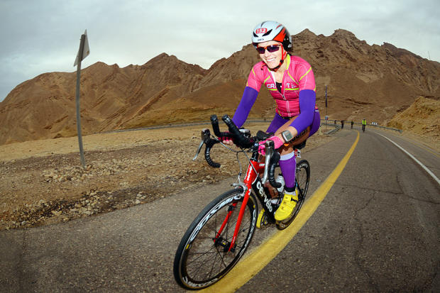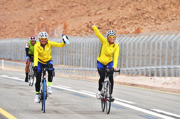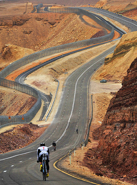 Riding along the Israel-Egypt border midway through the rugged, hilly bike. Women's Full Israman winner Dora Heller says that a recent border raid by terrorists prompted IsraeI authorities to build a much more fortified border fence.