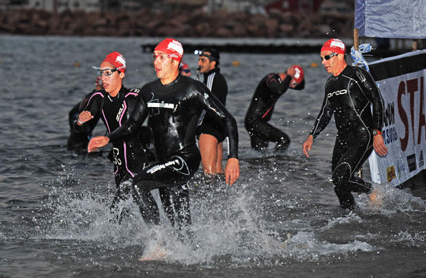 Swimmers charging up to T1.