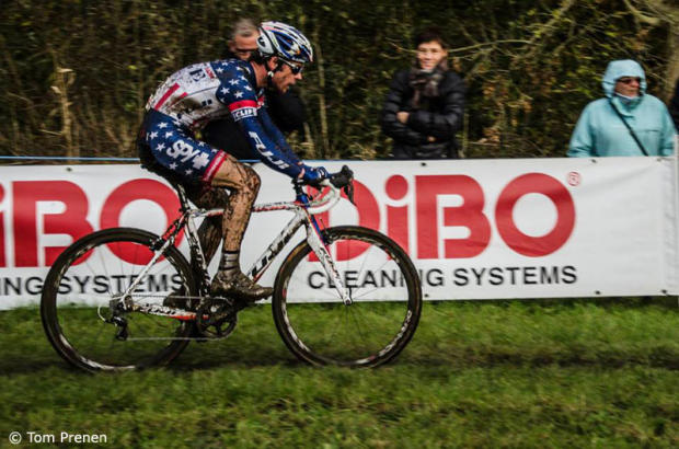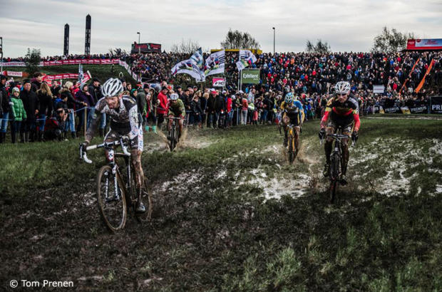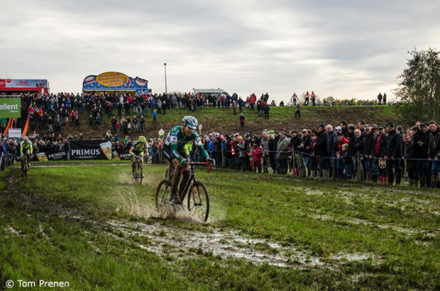 World Champion Sven Nys took the win in this waterlogged race and Telenet-Fidea teammates Wout Van Aert and Rob Peeters rounded out the podium. It was best for both athletes and spectators to come to this race well prepared otherwise it meant a very long soggy day.