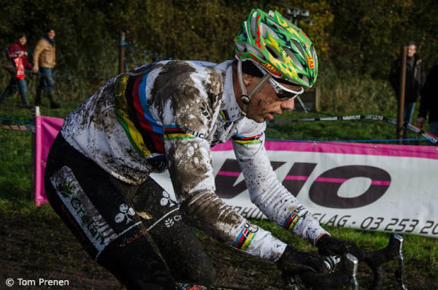 Wout Van Aert tried to hang on to Sven Nys once the World Champion came up to him.