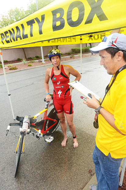 Olympic silver medalist Lisa Norden gave it her best shot despite a recurrence of plantar fasciitis two weeks before Vegas. But when she incurred a 4-minute penalty on the bike, a world title was gone. Still she soldiered on and finished 8th.