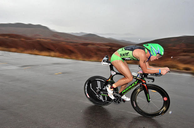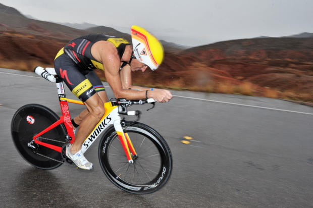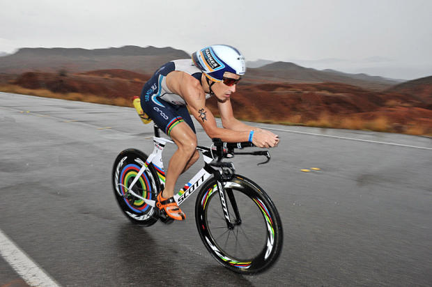 Las Vegas offered nothing if not variety. From the baking heat in 2011 to the cool, rainy 70.3 World Championship of 2013, the only constant was a great, challenging course that rewarded classic, all around talent. The first two years, the hills of Henderson Nevada pretty much ruled out the inevitable drafting effect that plagued the pool table flat Ironman 70.3 World Championship course at Clearwater. But perhaps the increasing quality of the pro fields erased that aspect this year as the men’s lead pack on the bike course numbered two dozen at times. But the hard pace still wore down the pretenders so only the best could unleash a winning run. That toughness makes men’s repeat winner Sebastian Kienle of Germany and two-time women’s winner Melissa Hauschildt of Australia triathletes for the ages – albeit still waiting for an equal triumph when the distance is doubled.