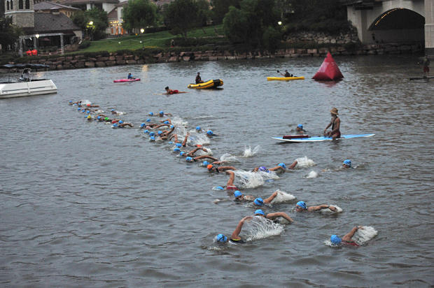 Josh Amberger was first out of the swim in 23:22 and held the lead on the bike for a long while until Sebastian Kienle took over. Amberger faded to 33rd on the run.
