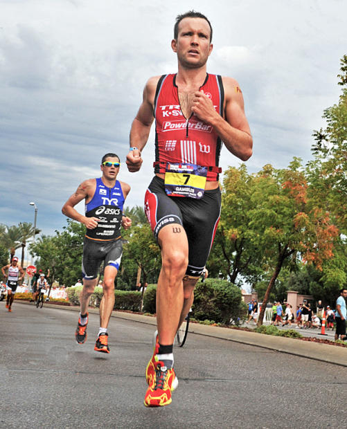 Jan Frodeno of Germany, the 2008 Olympic gold medalist, stayed with the first chase pack through the bike and put all his chips on the table with the run.