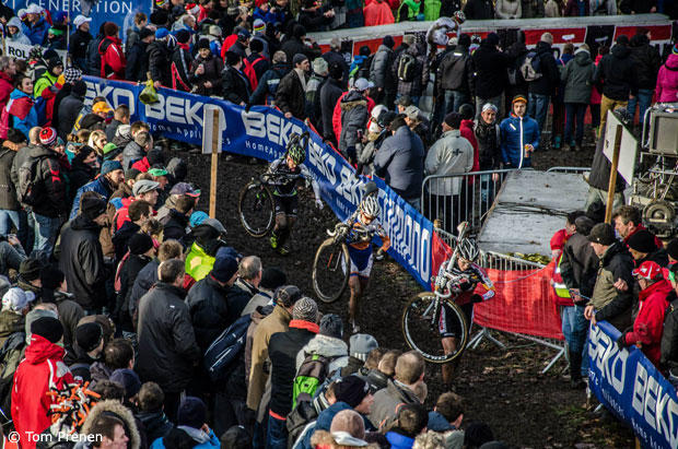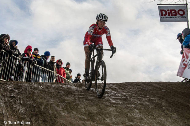 American Katie Compton prevented the comeback of Marianne Vos at the Namur Word Cup and here is another muddy gallery by Tom Prenen. The sun was shining a bit while the women raced but the conditions were still not too kind.