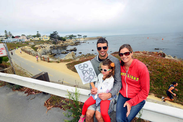 Brian and Becky Lavelle and their young daughter came to cheer on Brian’s father Tim.