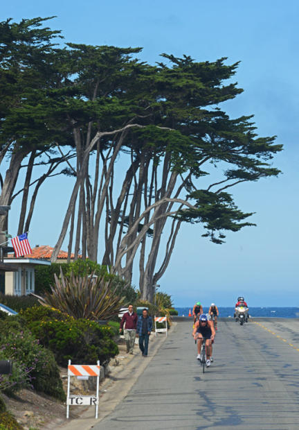 Top four elite women ride along the classic Pacific Grove shoreline.