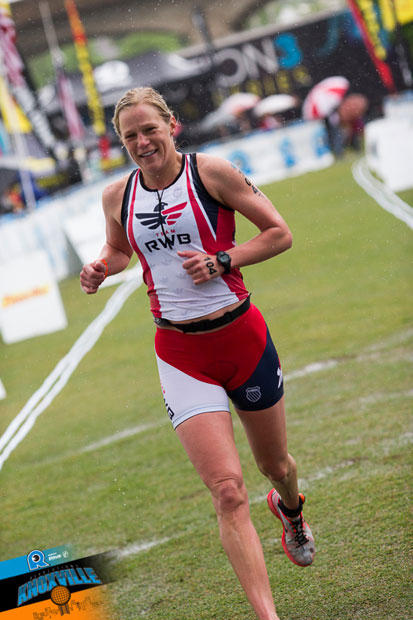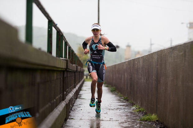 Mirinda Carfrae coming up the ramp from the Tennessee river.