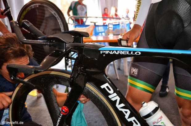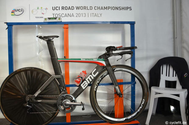 The BMC of Marco Pinotti in the UCI geometry check stand.