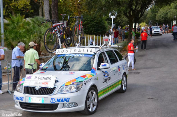 The team car of Rohan Dennis awaits the start of this rising Aussie talent.