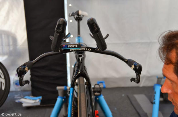 The view of Richie Porte's bike from the front.