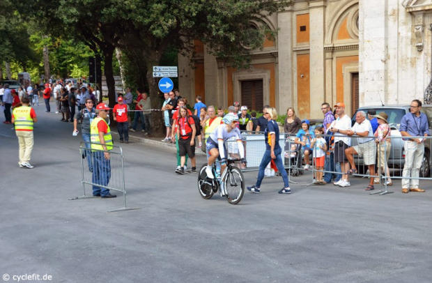 As most of the field had already been gone Tony Martin finished a warmup ride.