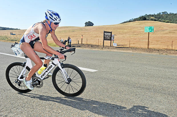 Clayton Fettell was first out of the swim, led the bike for 35 miles, then fell off the back.
