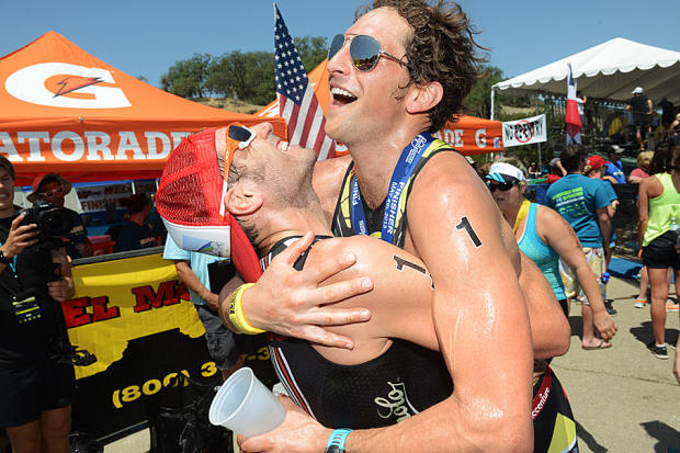 Training mates and good friends Jesse Thomas and Matt Lieto celebrate another Wildflower finish.