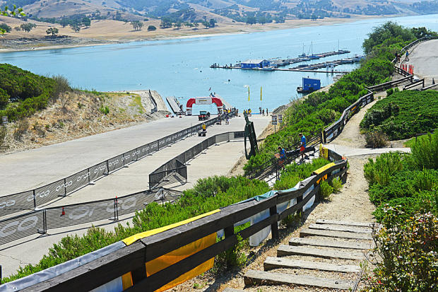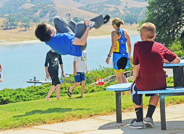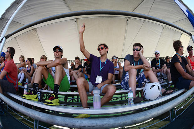 Lake San Antonio water were measured at 71 degrees – too warm for pro wetsuits, legal for age groupers.