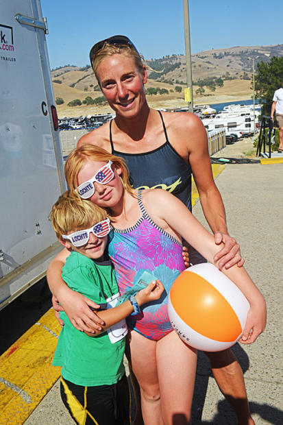 Multi-time competitor Rachel Challis with her children Gus and Chloe, who sported cool Ryan Lochte sunglasses.