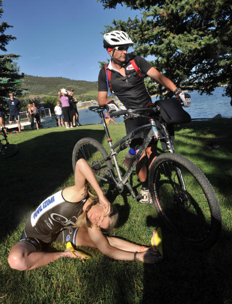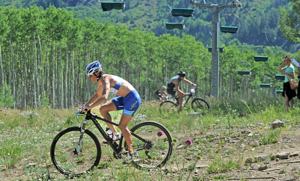 This race is conducted on major ski resort grounds that rise some 2,000 feet from the lake in Avon to the summit of the 15-mile mountain bike course. It was just what the doctor ordered for former XTERRA World Champion, Ironman 70.3 World Champion and Ironman Hawaii 3rd place finisher Julie Dibens, who is recovering from a major leg and foot operation and wanted a fun hit out in her first competitive triathlon start in over a year. Dibens led the bike through the first 10 miles before Vanlandingham took charge, and ultimately finished 7th.
