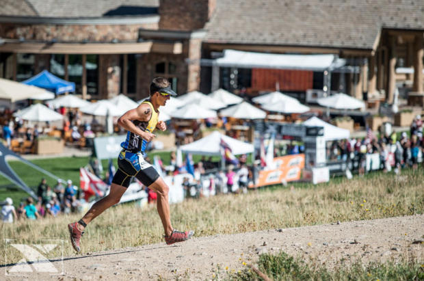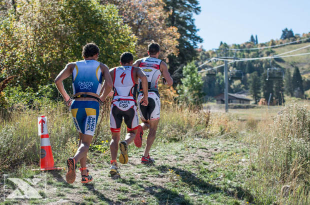 Coming out of the bike-run transition Leonardo Chacon, Ruben Ruzafa and Josiah Middaugh were neck in neck.