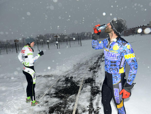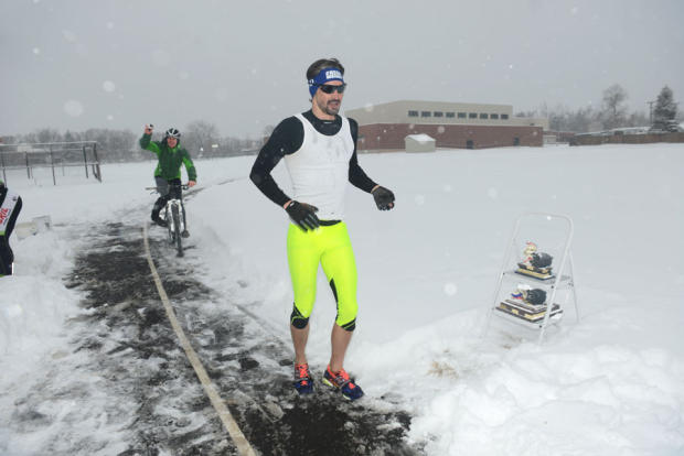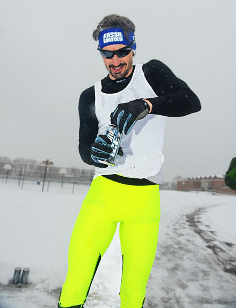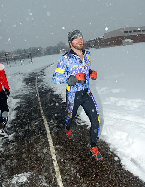 Despite the snow, Josh Shadle was on pace to break his own 6:20 race record before he was slowed by the cold.