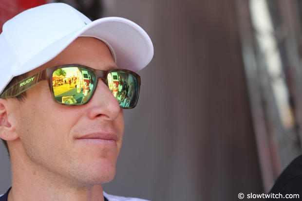 The reflection in the lenses of 2012 Ironman World Champion Pete Jacobs show some of the other Pros of this Pro panel session.
