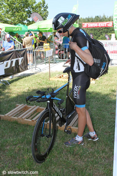 The flow of athletes was steady but not overwhelming. Lots of age groupers showed up in regular road or aero helmets for a race day that promises to be hot.