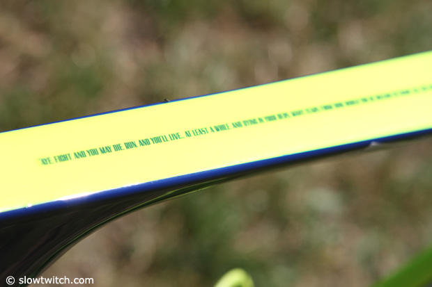 The Viner of Richie Nicholls is quite distinctive and has a Braveheart quote on the top tube.