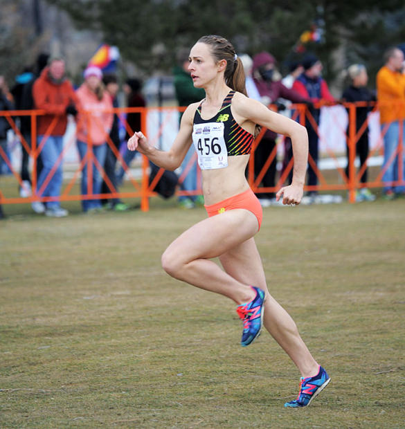 Amy Van Alstine of Flagstaff, Arizona sprints to an upset win, finishing the 8k run in 27:35 with a 22 seconds margin of victory over runner-up Jenny Simpson.