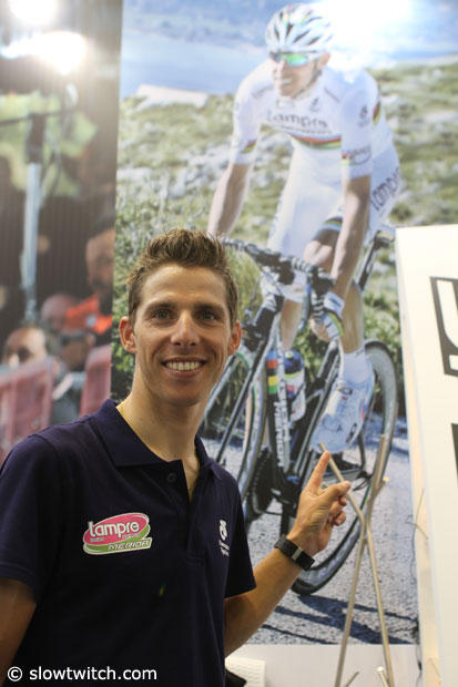 World Champion Rui Costa in the Salice booth in front of his poster. He was very easy going and super friendly.