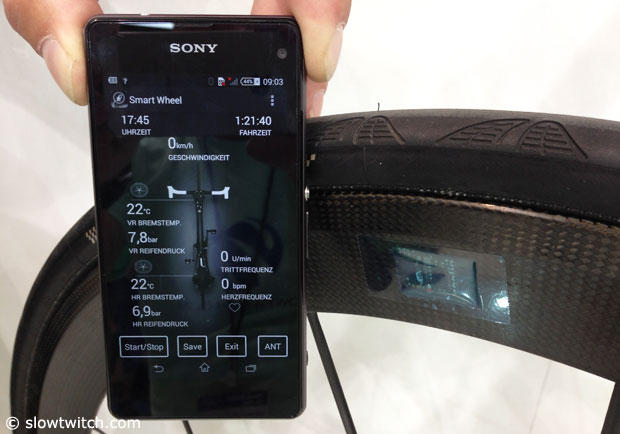 German brand Lightweight showed off the Smartwheel Concept. Via an app on your phone you can see tire pressure and rim temperature. It is just a prototype, but they were curious if an additional $800 or so per set to get such data would find consumers well, or at least be acceptable.