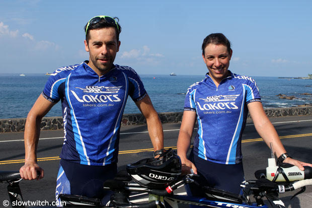 Adelaide, Australia residents Daniel and Anna Kelly are part of the big Lakers Tri Club. Daniel raced in Chattanooga, and wife Anna races here in Kona in W30-34. She is part of a 17 strong racing contingent from that Lakers club. Larger than PIS I was told.