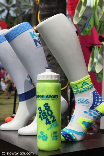 CompressSport sells special Kona kits, and each item comes in these commemorative 1 liter bottles.