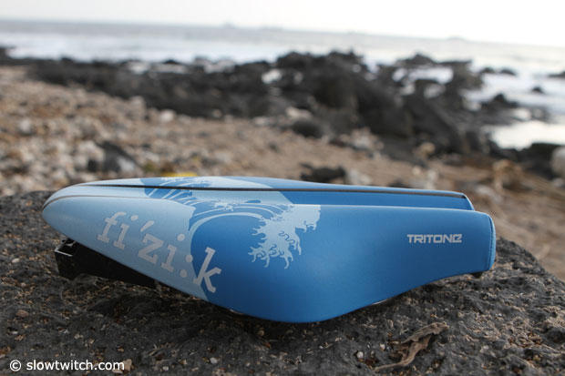 This Hawaiian themed Fizik Tritone saddle was created for the Raelerts, but is available to you and me in the expo.