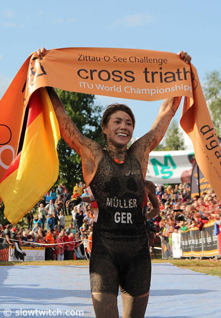 On a muddy and rainy day with intermittent sun two new ITU Cross Triathlon World Champions were crowned in Zittau, Germany but these titles did not come easy on that tough course. Ruben Ruzafa from Spain and Kathrin Müller from Germany earned it the hard way and Karsten Täschner captured the images for us after racing earlier that day.