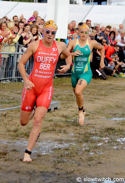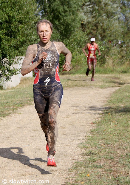 The defending champion Helena Erbenova had her work cut out after a slow swim.