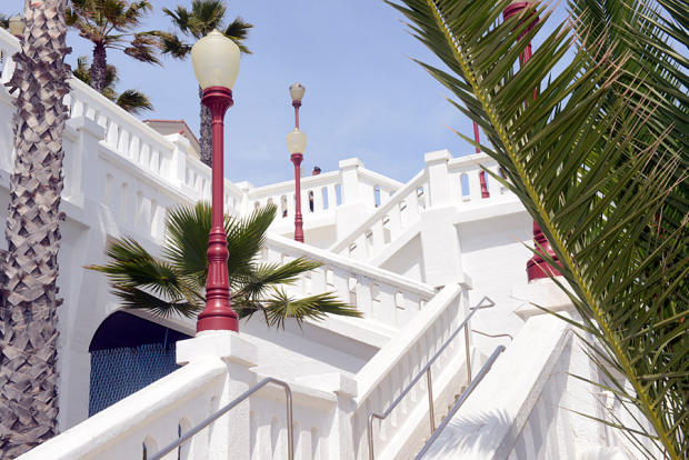 The graceful architecture of the stairs near the Oceanside pier.