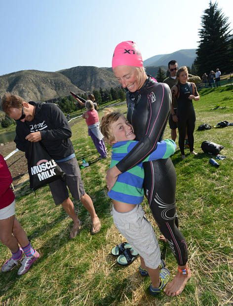 A big hug for mom before the start.