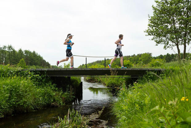 Henrik Hyldelund leads a string of athletes across the Danish countryside.
