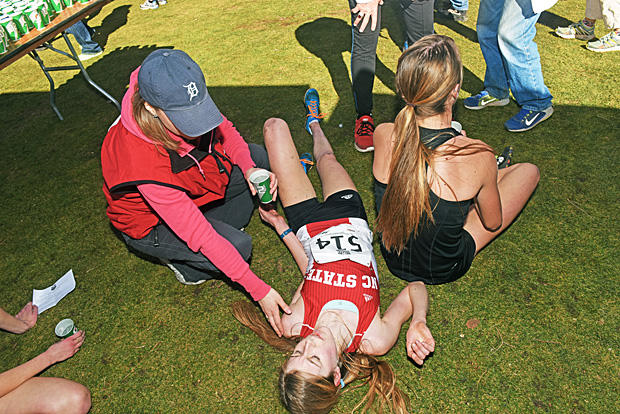 Mary Grace Doggett of North Carolina State recovers after finishing 8th in Junior Women 6k in a time of 22:47.