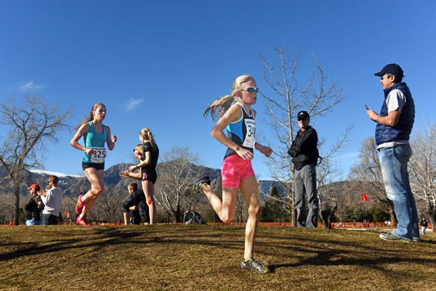 Katie Rainsberger of Colorado Springs, Colorado (534) leads early in Junior Women 6k. She finished 3rd in 22:11.