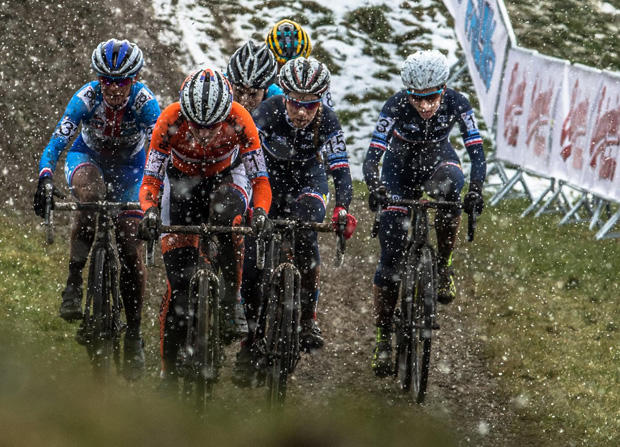 Among the front runners were Belgian Sanne Cant, Dutch Marianne Vos, Czech Katerina Nash, Brits Nikki Harris and Helen Wyman, and French Lucie Chainel-Lefevre and Pauline Ferrand-Prévot.