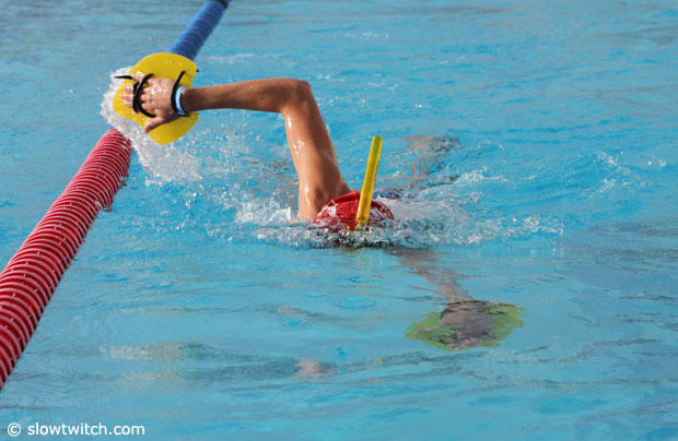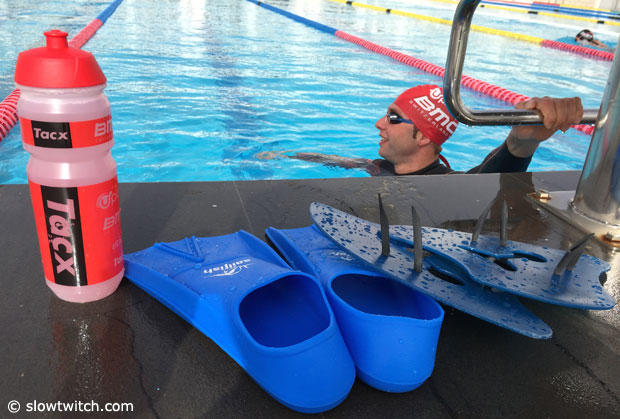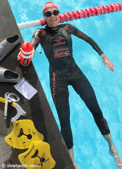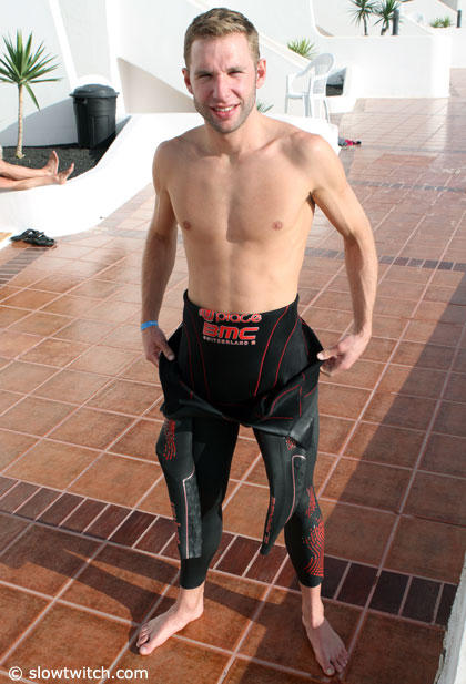 After a few kilometers in the pool the wetsuit came off for the final 2km.