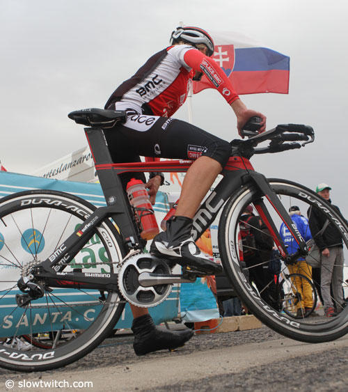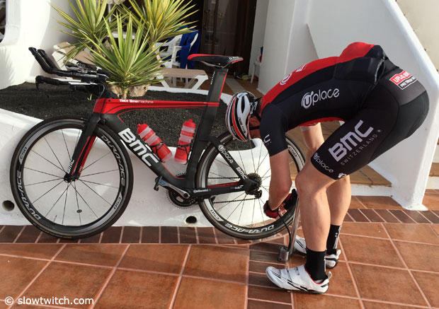 Swiss Uplace-BMC team mate Ronnie Schildknecht gets ready for a longer ride.