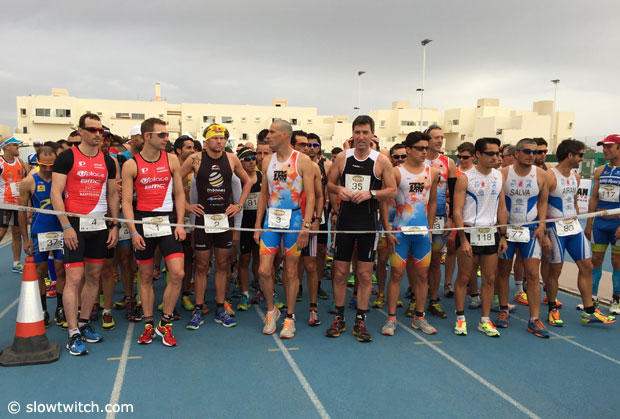 The field is lined up and ready for the 5k /20k / 2.5k duathlon.