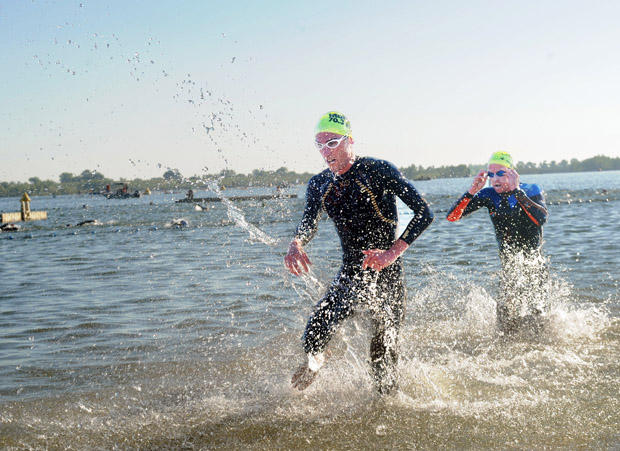 Mark Bowstead and Paul Ambrose exit the swim in 7th and 8th.