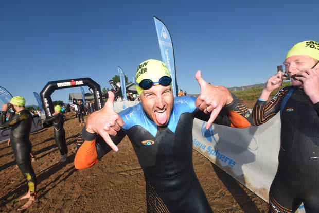 A cheerful Greg Bennett swam well and rode 2:05:32 but a glute injury forced a DNF.