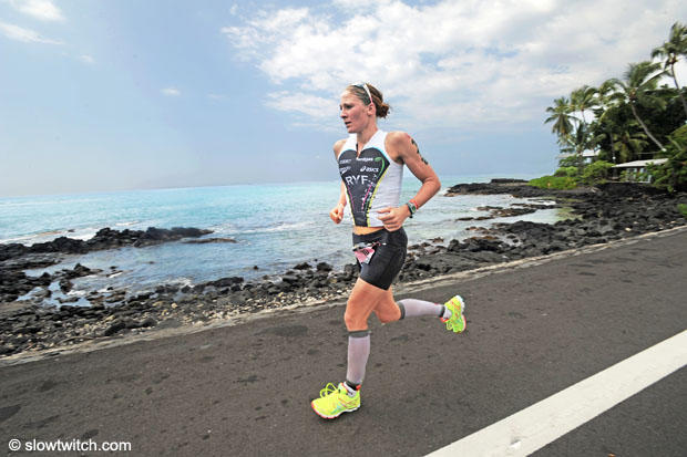 This year, Ryf topped Chrissie Wellington’s course record at Ironman Frankfurt with an 8:51:00 clocking that was 10 minutes faster than runner-up Julia Gajer. She has a killer bike and her overall strength doesn’t leave her wasted after her usual 4:44 to 4:54 Ironman bike splits. The big mystery – at this race, against Rinny Carfrae – is Ryf’s run. On Ironman days her run splits have been 3:11:03, 3:16:15, 3:07:00 at Kona, and 3:06:06 at Frankfurt. Before Carfrae and Chrissie Wellington, those were good enough to win at Kona. Not now. Ryf has the speed and potential to crack 3 hours and super coach Brett Sutton has Ryf working on that run.