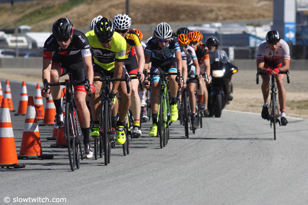 Action during one of the criterium races held today at Laguna Seca.