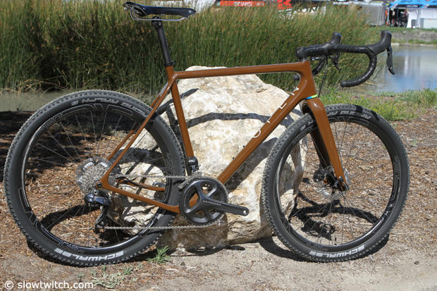 The Open Cycles crew soon will offer a new gravel frame set, lovingly referred to as UP, or Unbeaten Path. Frame and fork will retail for $2,900 or Euro 2,900, but first consumers need to vote for either this orange color…